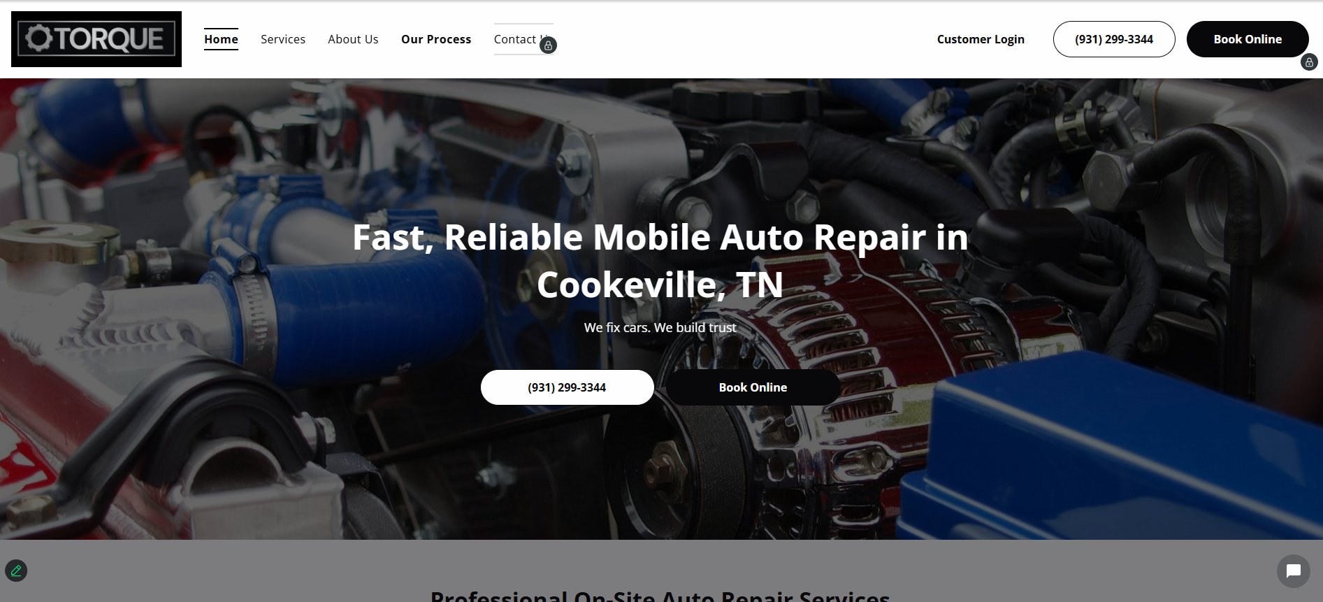Torque Mobile Mechanics proudly serves Cookeville and the Upper Cumberland with honest, high-quality mobile automotive repair. Our mission is simple — to provide dependable, transparent service that meets drivers where they are. With industry-standard tools, certified technicians, and a commitment to integrity, we ensure every repair is done right the first time.